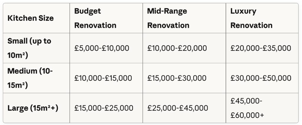 Let’s get practical. Here’s what real London homeowners are paying in 2025, broken down by kitchen size.